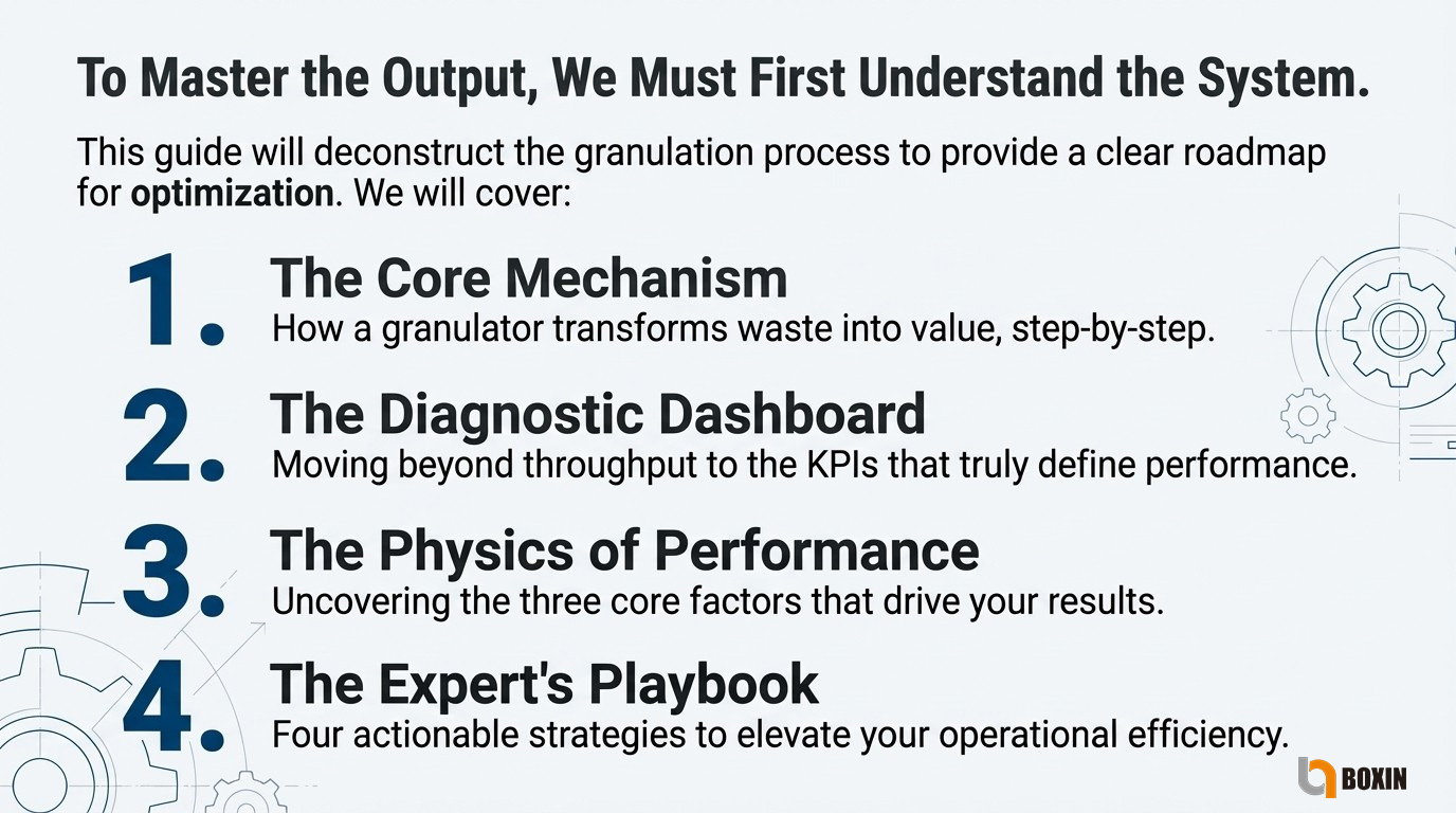 At Boxin Machinery (Boxin PM), we design plastic granulators and integrated recycling machinery based on a deep scientific understanding of performance principles.