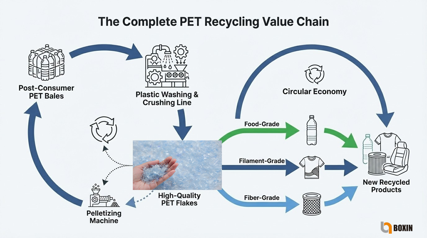 These flakes serve as a key intermediate raw material for manufacturing new plastic products. Through melting and reprocessing, they can be turned into recycled plastic pellets. This recycling method significantly reduces reliance on virgin plastics and helps conserve both resources and energy.
